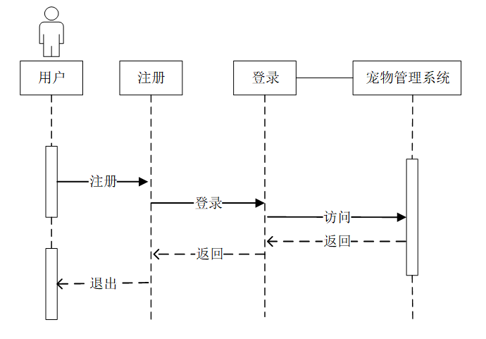 用户通过注册模块发送注册请求,系统完成注册后返回确认信息。随后,用户通过登录模块发送登录请求,系统验证用户信息后允许访问目标系统。用户完成操作后可选择退出,系统终止会话。注册时序图,如图4-3所示。