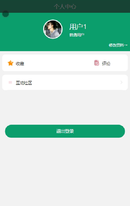 个人中心是用户管理个人信息和使用记录的地方,用户可以在这里查看个人首页、收藏夹等功能。个人首页展示用户的个人资料。收藏夹保存用户喜欢的非遗文化或者资讯内容。