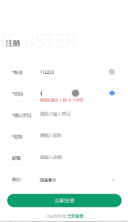 (1)注册登录:用户注册登录:系统用户需要进入系统内操作各个功能,首先需要在小程序端进行注册,输入账号、姓名、密码、确认密码、头像、手机等内容,点击注册,注册成功后方可凭账户以及密码进行登录。