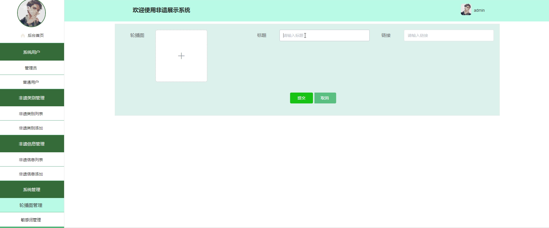 | 预期结果 | 提交以后,页面首页会显示新的非遗信息 |