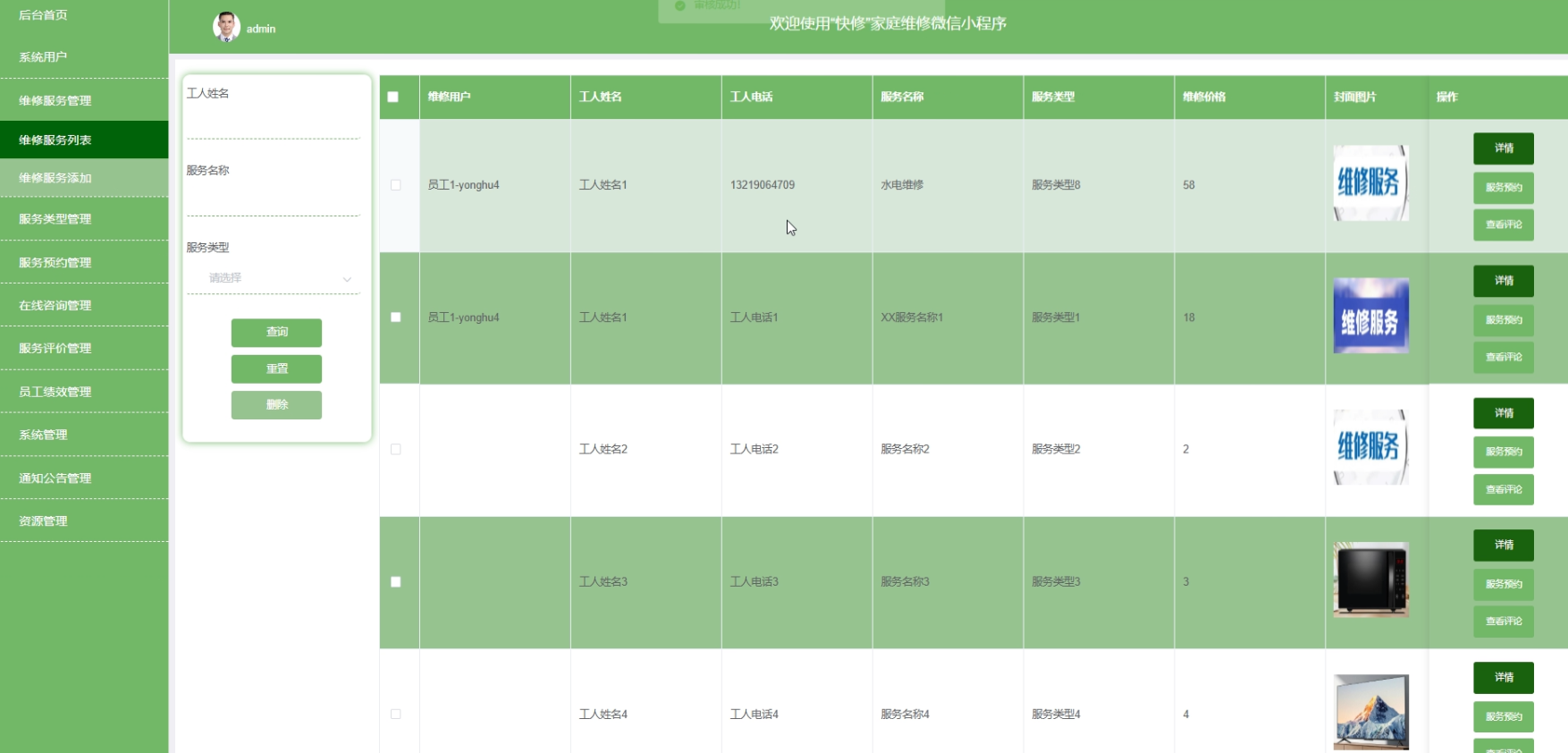 随着互联网大趋势的到来,社会的方方面面,各行各业都在考虑利用互联网作为媒介将自己的信息更及时有效地推广出去,而其中最好的方式就是建立网络管理系统,并对其进行信息管理。由于现在网络的发达,家庭维修管理通过网络进行信息管理掀起了热潮,所以针家庭维修管理的用户需求开发出一套家庭维修管理系统小程序。
