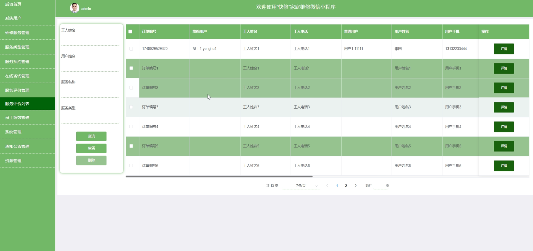 | 用例描述 | 管理员正确登录后台管理的条件下,维修接单模块进行管理 |