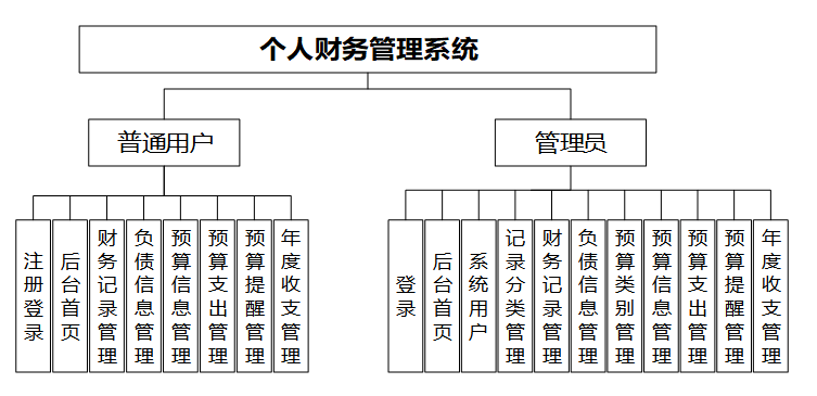 个人财务管理系统划分为了前端模块和后端模块两大部分。