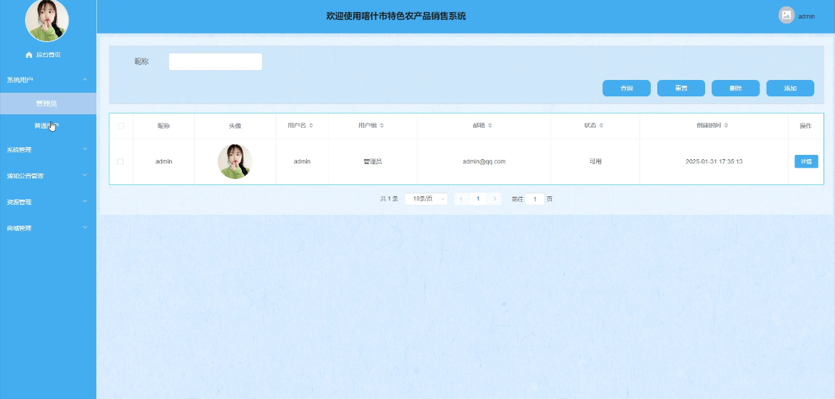 - 系统用户:管理员可管理所有用户信息,包括对普通用户和管理员等用户信息增改删查,支持审核、封禁、权限设置等操作。