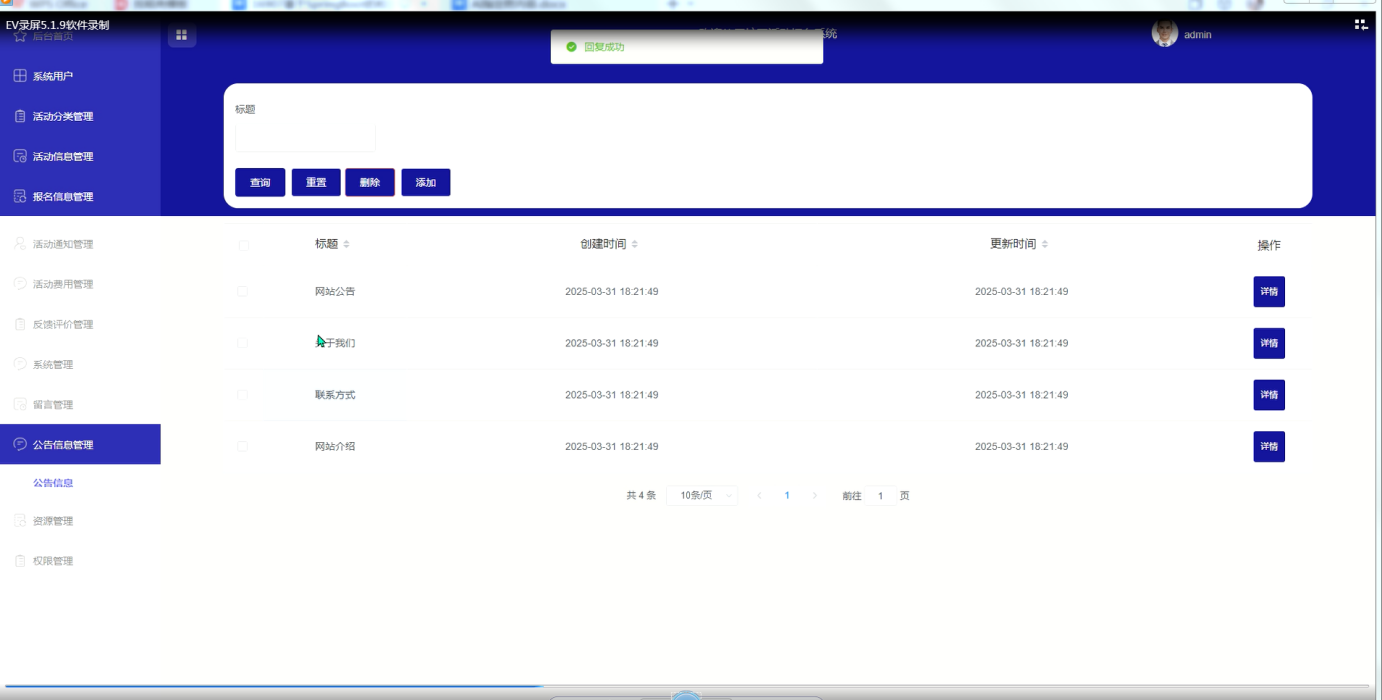 - 网站公告管理