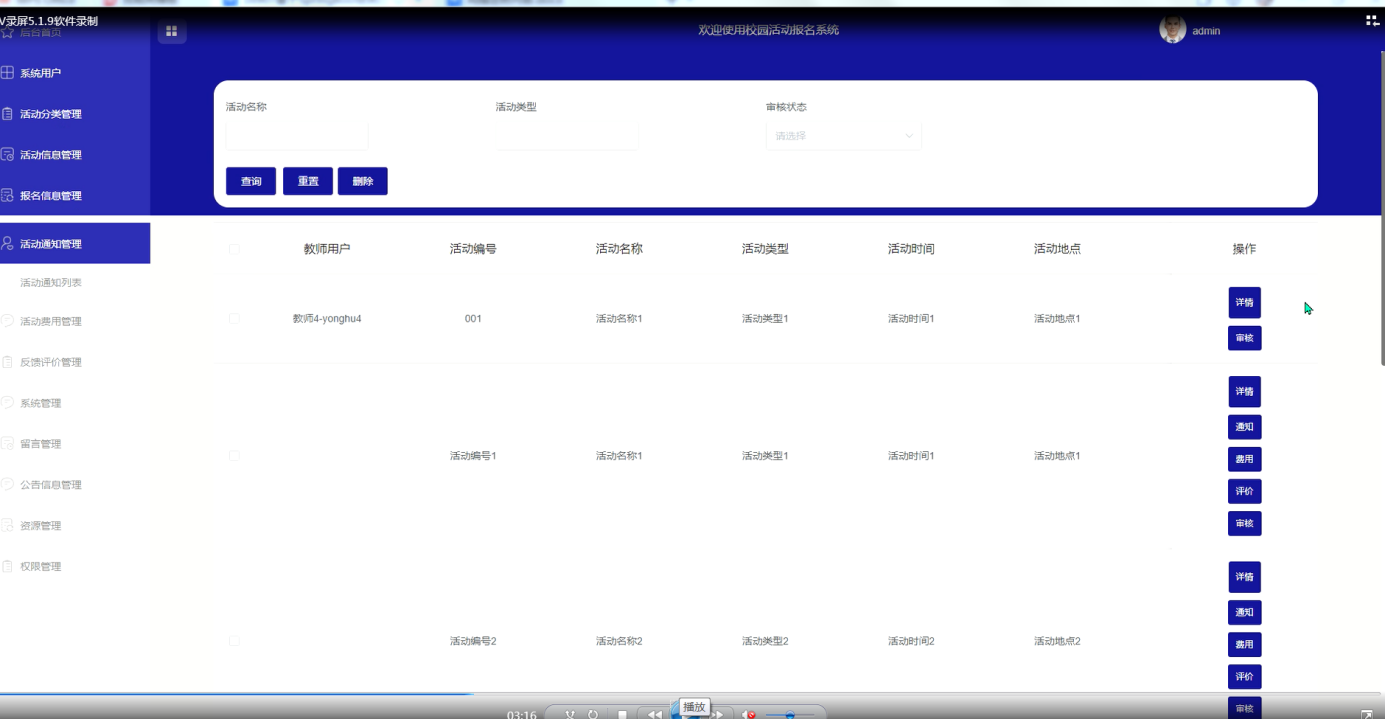 图5-8活动通知管理界面