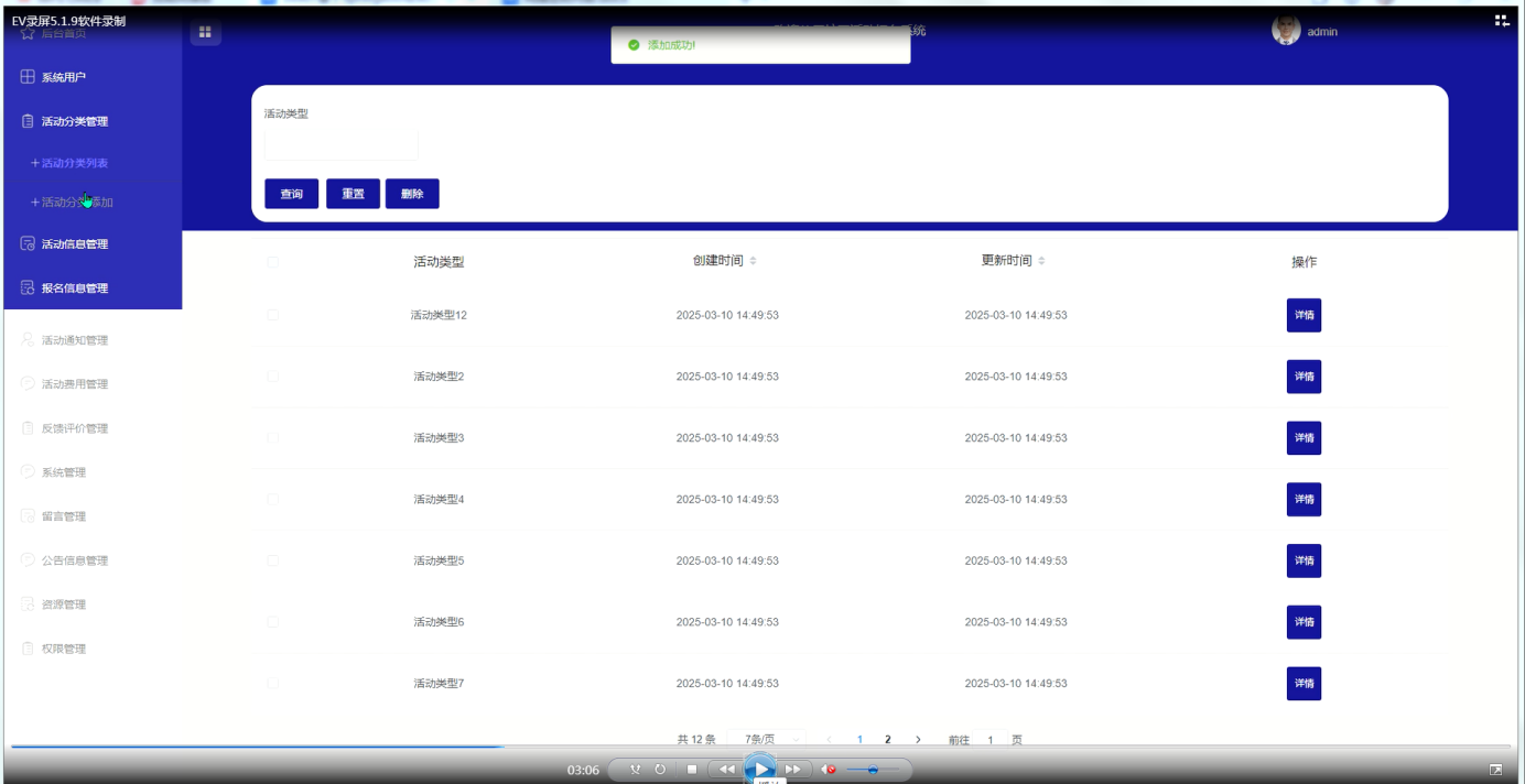 图5-7活动分类管理界面