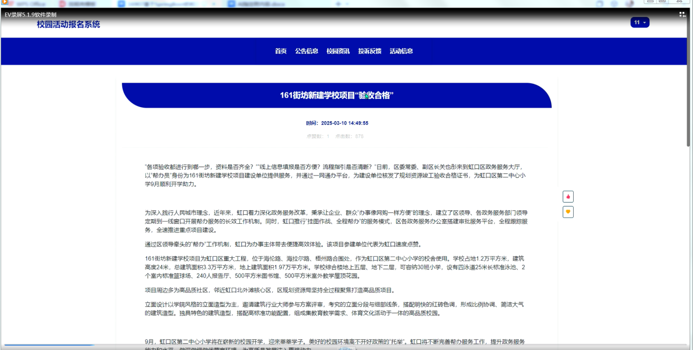 关键词:SpringBoot;校园活动;报名系统;系统设计;管理平台