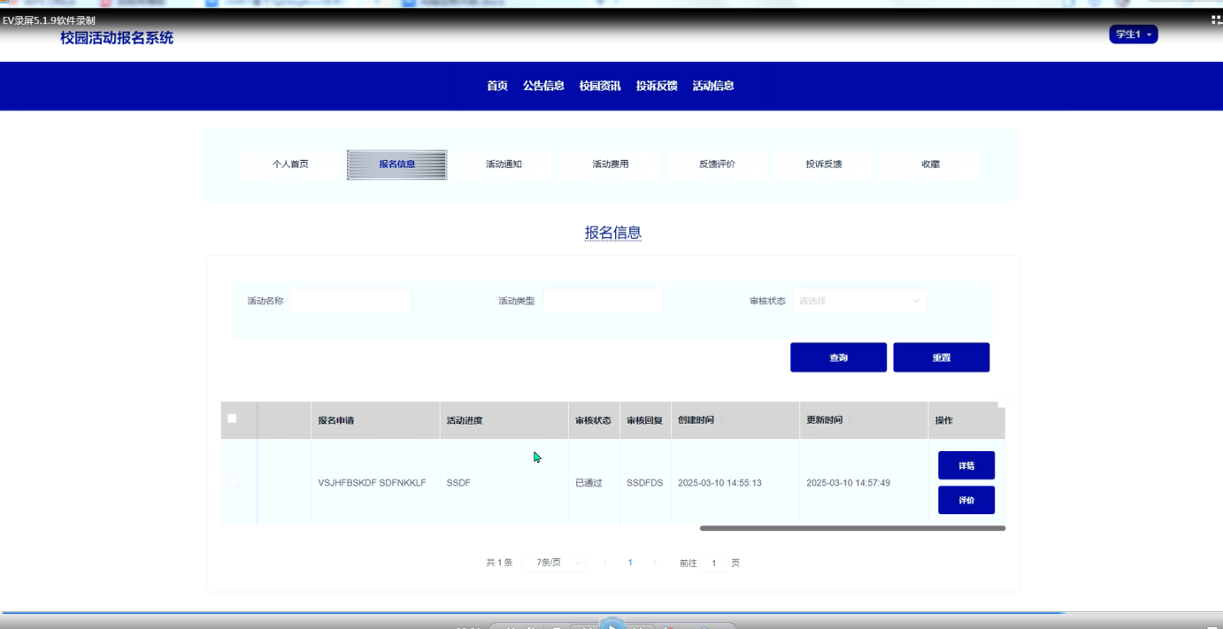学生用户在系统中可以查看首页展示的最新活动和公告信息,获取校园资讯并参与投诉反馈,提出对活动的意见或建议。学生可以浏览活动信息、报名参加感兴趣的活动,查看自己的报名信息和活动通知,还可以管理个人账户信息、查看活动费用及进行反馈评价。此外,学生还可以收藏喜欢的活动,方便日后查看与参与。