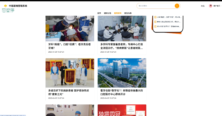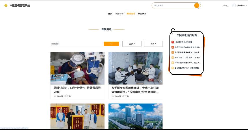 通知公告:系统首页或专门的公告板块中,注册用户可查看医院发布的最新公告,例如就诊流程的变化、节假日的门诊时间、医疗政策调整等信息。