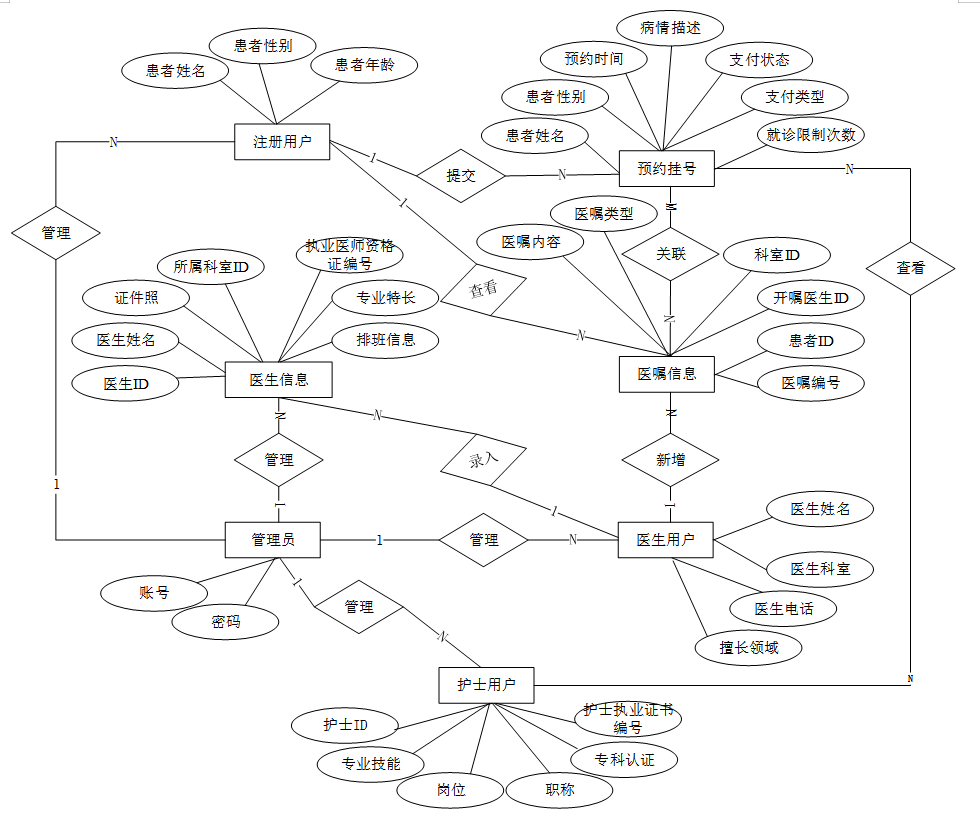 系统用户管理:包含注册用户、医生、护士和管理员的管理功能,支持用户信息的查看、添加、修改和删除等操作。