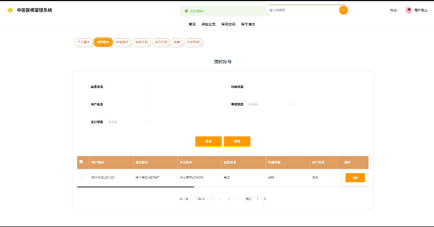 预约挂号管理:医生可以查看自己的挂号预约情况,处理患者的挂号请求,并支付挂号费用。