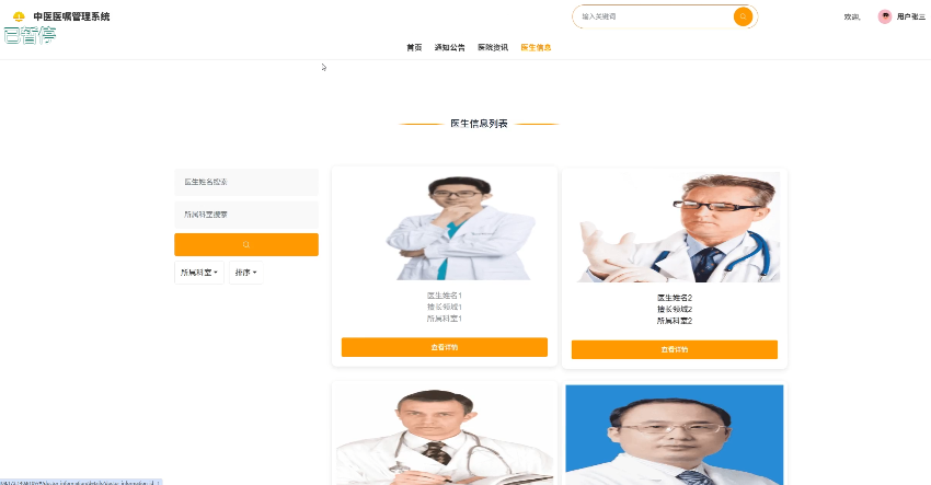 医生信息:注册用户可浏览医生的详细信息,包括医生的职称、科室、擅长领域、个人简介等,帮助患者选择适合自己的医生。