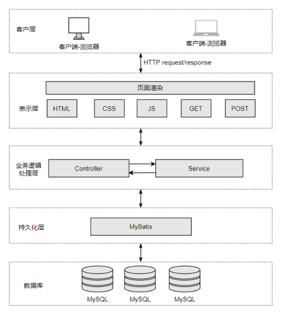 B/S架构通常采用Web技术进行实现,包括HTML、CSS和JavaScript等。用户在浏览器中发起请求,服务器响应并返回数据。数据传输通常通过HTTP或HTTPS协议进行,B/S架构的灵活性使其适用于在线购物、信息管理系统和社交网络等各类应用场景[4]。由于其易于扩展性,B/S架构可以方便地支持大规模用户访问,适应不断变化的业务需求。