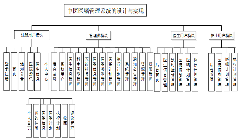 本中医医嘱管理系统的设计与实现,主要提供注册用户、医生、护士和管理员四类用户的管理功能。系统在通过高效的用户管理、医院资源调度和信息处理,实现医疗服务的便捷化与信息化。以下是对注册用户、医生、护士和管理员用户的功能描述: