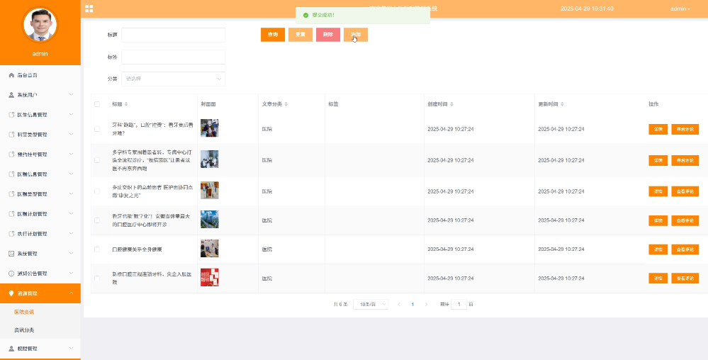 通知公告管理:发布和管理医院的通知公告,如停诊信息、政策变更和健康宣教等,确保信息及时传达给相关人员。