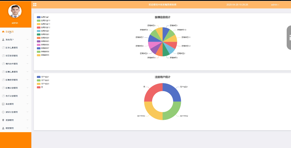 后台首页:提供数据统计功能,包括医嘱信息统计和注册用户统计,方便管理员掌握系统整体运行情况。
