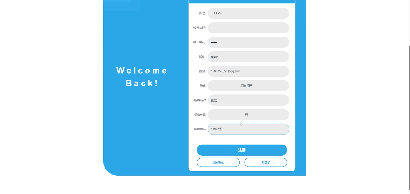 后台首页:房东用户可以在后台首页修改个人资料、登录信息和密码,确保信息安全。