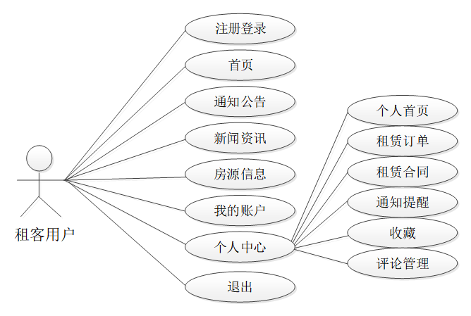 租客用户用例图如下图2-1所示。