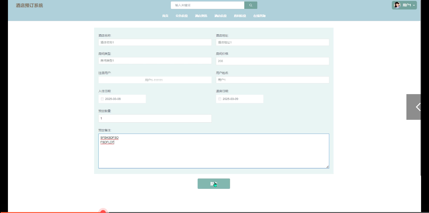 如果房间可预订,用户可以提交订单,系统会生成订单信息并扣除相应的房间库存。