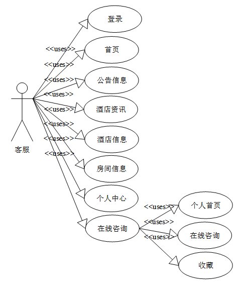 实用性方面,本次设计的主要任务是在酒店预订系统内公告信息、酒店资讯、酒店信息、房间信息、在线咨询、预定信息、取消订单、评价信息等,符合当前潮流的发展。从用户角度出发,同时也考虑系统运营成本和人力资源,采用网络上的便捷方式,实现线上业务,使得业务流程更系统,也更方便用户的体验,比较实用。