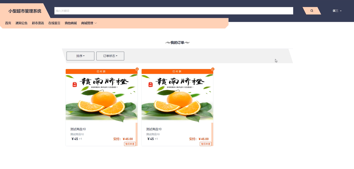 普通用户可以在商城管理中查看我的订单界面,包括订单的状态、购买金额、购买数量、商品名称等。管理员和销售用户可以在商城管理中查看订单列表,对用户订单进行管理。界面如下图所示。