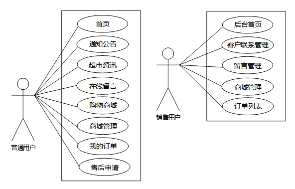 小型超市管理系统中用户角色用例图如图2.1所示: