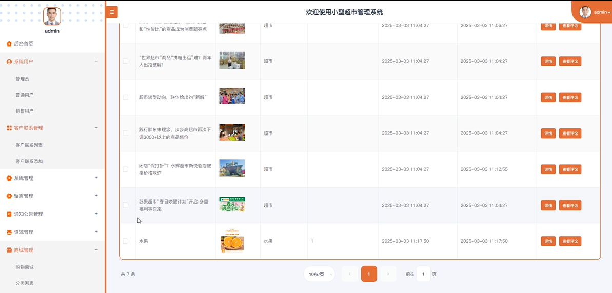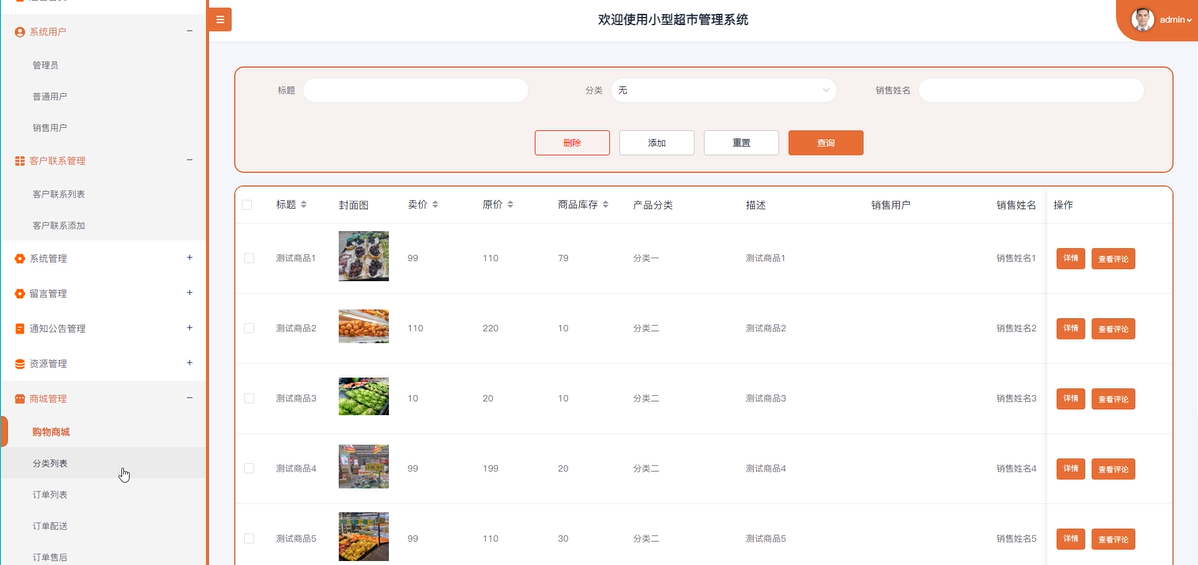 购物商城管理:管理员和销售可以发布、编辑和删除商城商品信息。界面如下图所示。