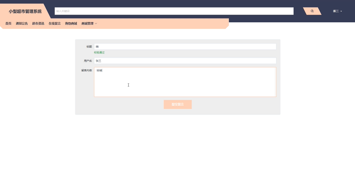 - 在线留言:普通用户可以点击“在线留言”界面,填写标题、用户名、留言内容等信息,点击“提交”即可完成在线留言。