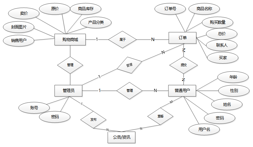 下面是整个小型超市管理系统中主要的数据库表总E-R实体关系图。