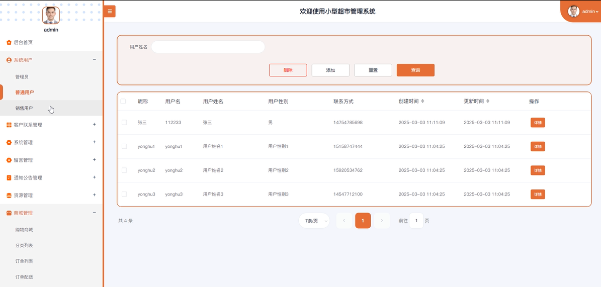 - 系统用户管理:管理员可以管理系统用户,包括添加、修改和删除管理员、销售用户和普通用户的账号和权限信息。