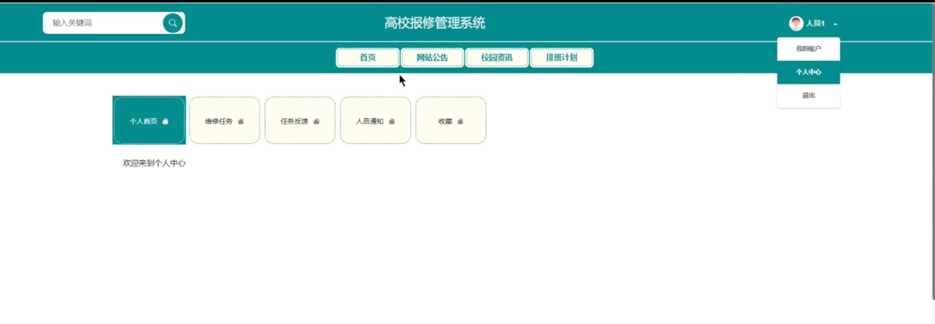 (2)首页:当维修人员进入高校报修管理系统的时候,首先映入眼帘的是系统首页、网站公告、校园资讯、排班计划等内容。