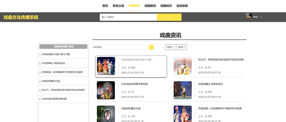(2)戏曲文化传播系统是采用现代化前端技术,如Vue.js,确保在不同设备上都能良好展示。界面简洁明了,操作直观便捷,用户可轻松浏览、搜索戏曲资讯、戏曲剧目、戏曲知识等信息,同时享受流畅的交互体验,提升了系统的易用性和实用性。