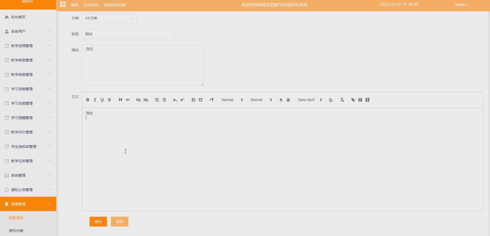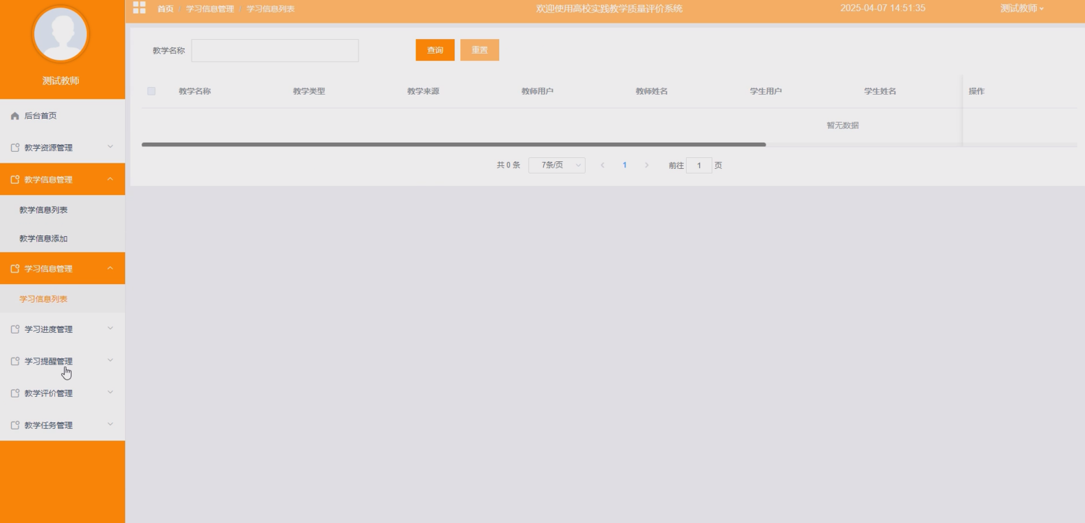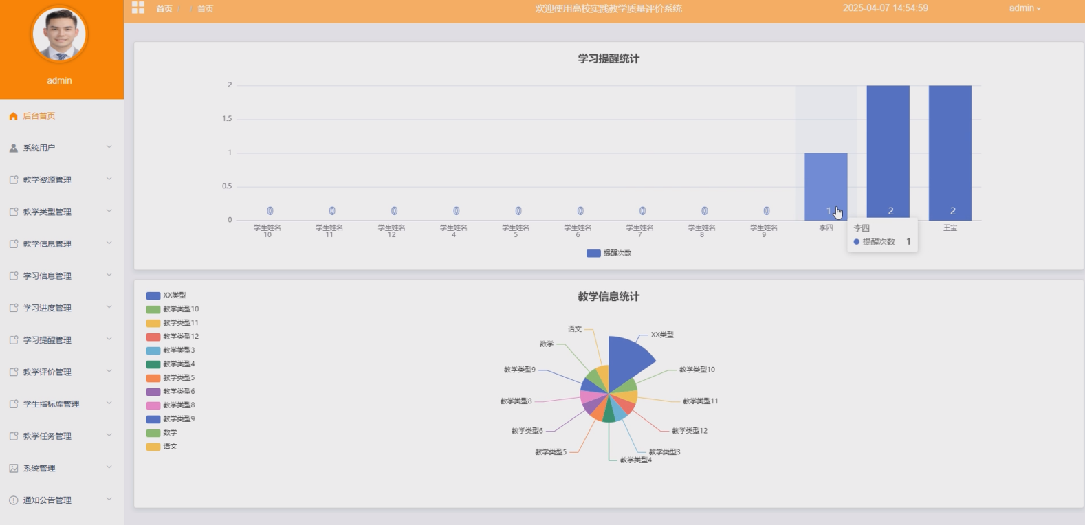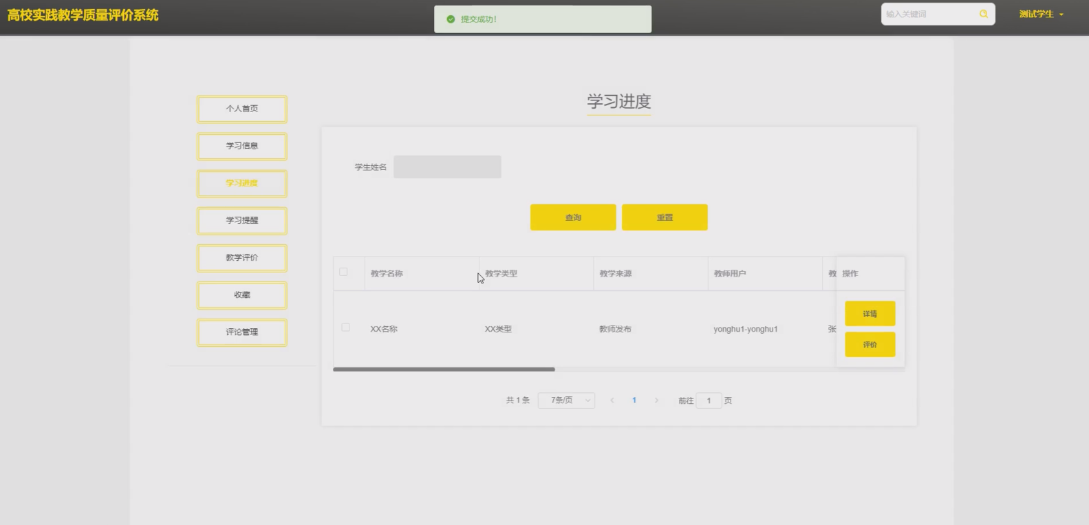 系统上线后运行稳定,用户反馈良好。通过系统的应用,高校实践教学质量评价的效率显著提升,数据处理与分析能力大幅增强。用户能够便捷地获取教学资源、参与教学评价;教师可以实时掌握学生学习进度与评价反馈;管理员能够高效管理教学资源与系统权限。实践证明,该系统有效解决了传统模式的弊端,为高校教学质量的持续提升提供了有力的技术支持。