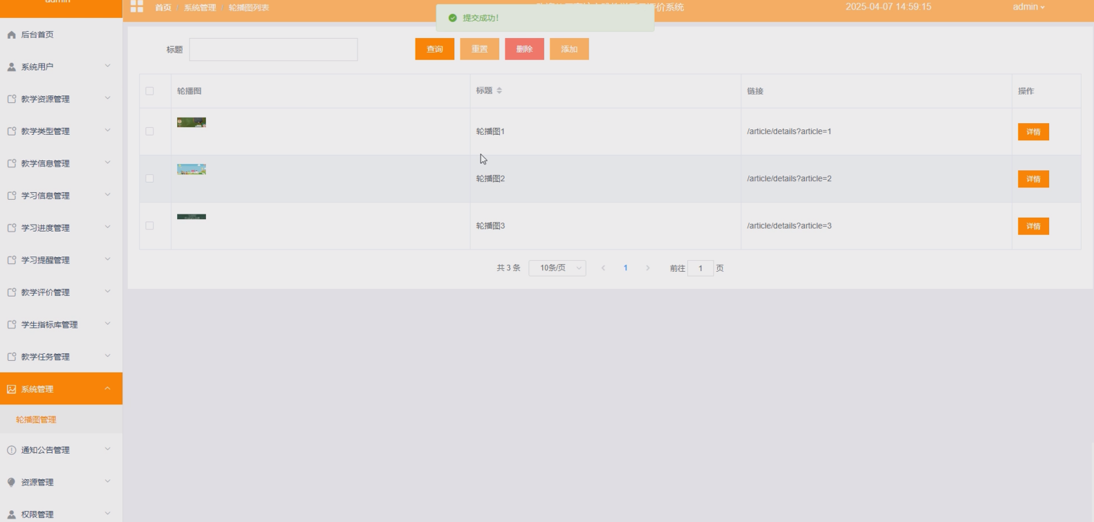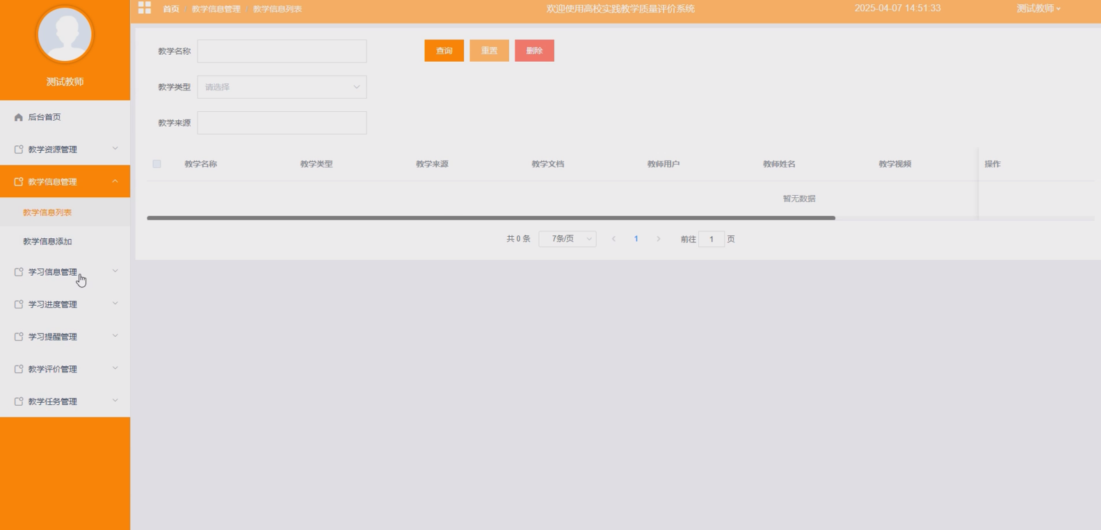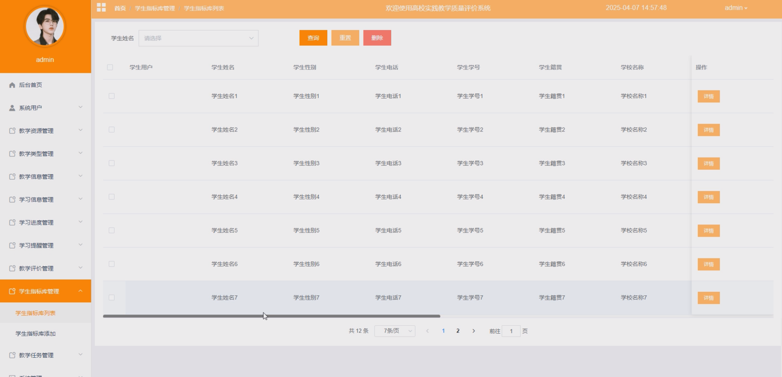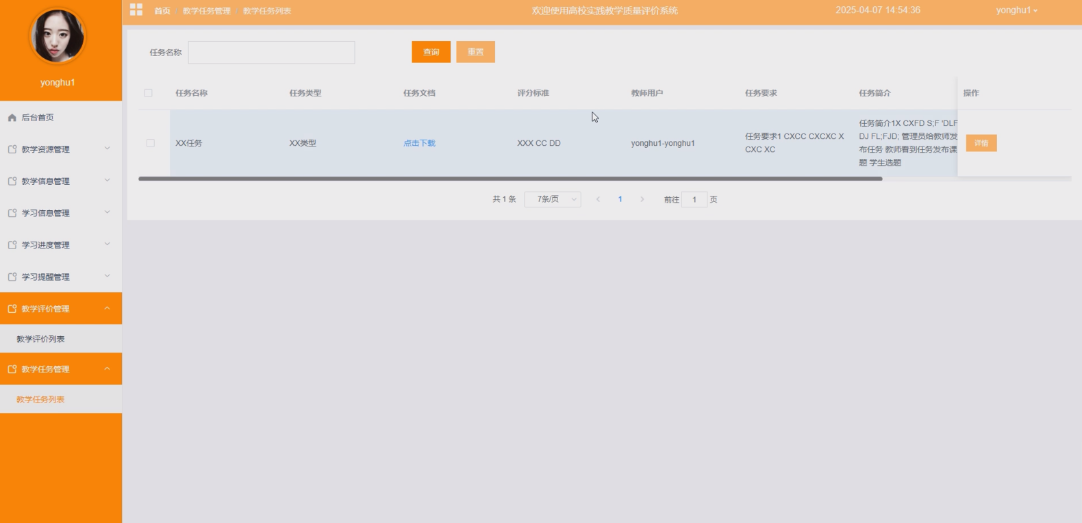 系统上线后运行稳定,用户反馈良好。通过系统的应用,高校实践教学质量评价的效率显著提升,数据处理与分析能力大幅增强。用户能够便捷地获取教学资源、参与教学评价;教师可以实时掌握学生学习进度与评价反馈;管理员能够高效管理教学资源与系统权限。实践证明,该系统有效解决了传统模式的弊端,为高校教学质量的持续提升提供了有力的技术支持。