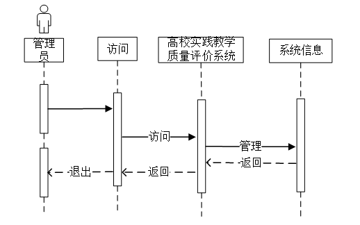管理员通过访问系统发起请求,系统接收访问后转向系统信息模块进行管理操作。管理完成后,系统返回管理结果至系统,最终反馈给管理员,管理员可选择退出。管理员管理系统信息时序图如图4-6所示。