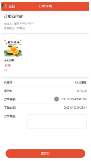 | 订单查询功能测试 | 1. 打开订单查询页面。 2. 查看所有订单列表。 3. 点击某个订单进入详情页。 | 1. 页面显示所有订单状态。 2. 订单详情页显示订单信息,包括商品、状态、金额等。 | 与预期结果一致 |