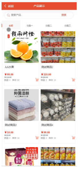 用户进入商品信息页面,可通过搜索框输入关键词或选择分类筛选商品。点击商品卡片可查看详细信息,包括价格、库存、描述及图片。商品信息界面如图5-1所示。