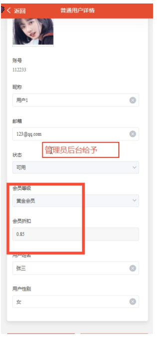 用户在会员中心页面可查看当前会员等级、积分及折扣信息。页面还会显示升级所需积分及当前积分进度。会员等级界面如图5-6所示。