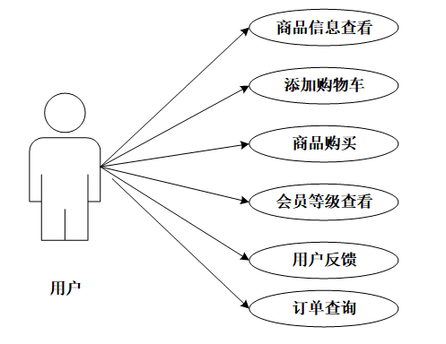 系统为用户提供以下功能:查看商品信息、添加商品至购物车、完成商品购买、查询订单状态、提交用户反馈、查看会员等级。