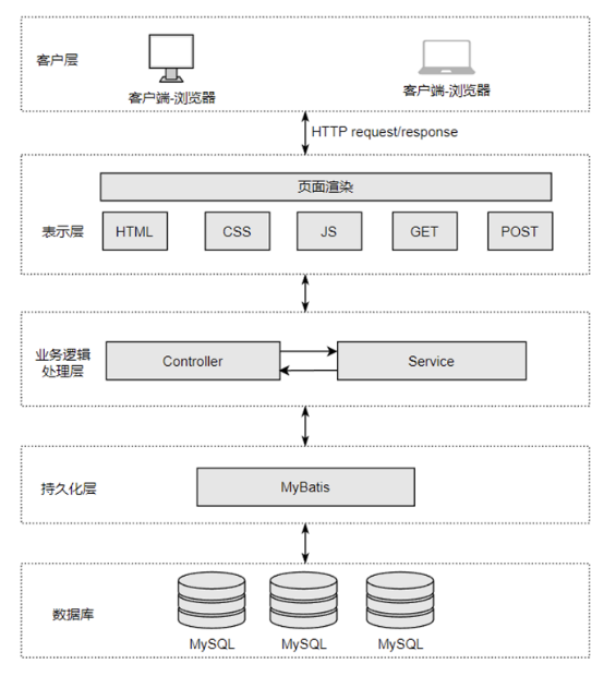 B/S(Browser/Server)架构是一种网络架构模型,其主要特点是客户端通过浏览器与服务器进行通信,所有的业务逻辑和数据处理都在服务器端完成,客户端仅负责展示数据[10]。B/S架构本质上是一种客户端-服务器模式的变体,它通过将传统的C/S(Client/Server)架构中的客户端功能移到浏览器中,简化了客户端的开发和维护工作。在B/S架构中,用户通过浏览器发送请求,浏览器负责展示从服务器获取的数据,服务器则处理请求并返回响应。该架构避免了安装和配置客户端软件的麻烦,也减少了对客户端硬件的依赖,适合于需要大规模部署和跨平台支持的应用系统。