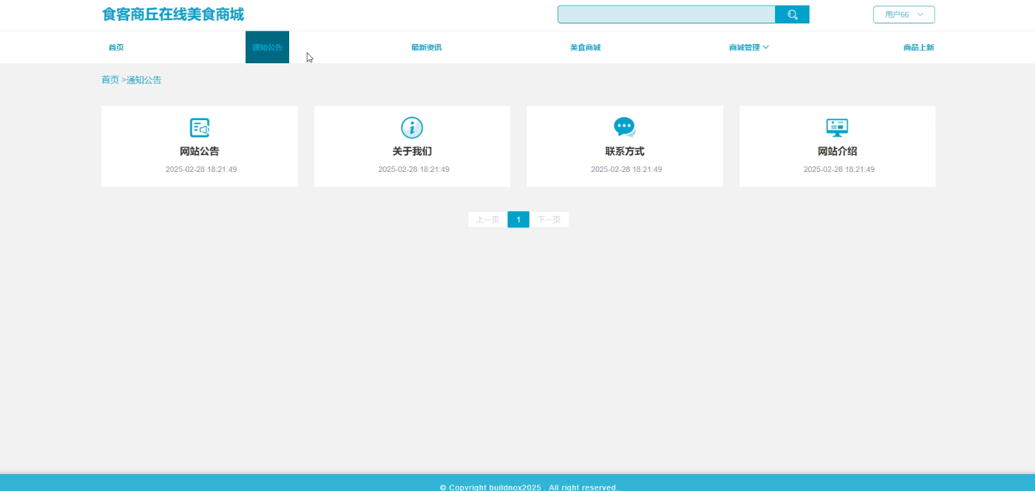 Key words: food mall system; SpringBoot; Vue; MySQL