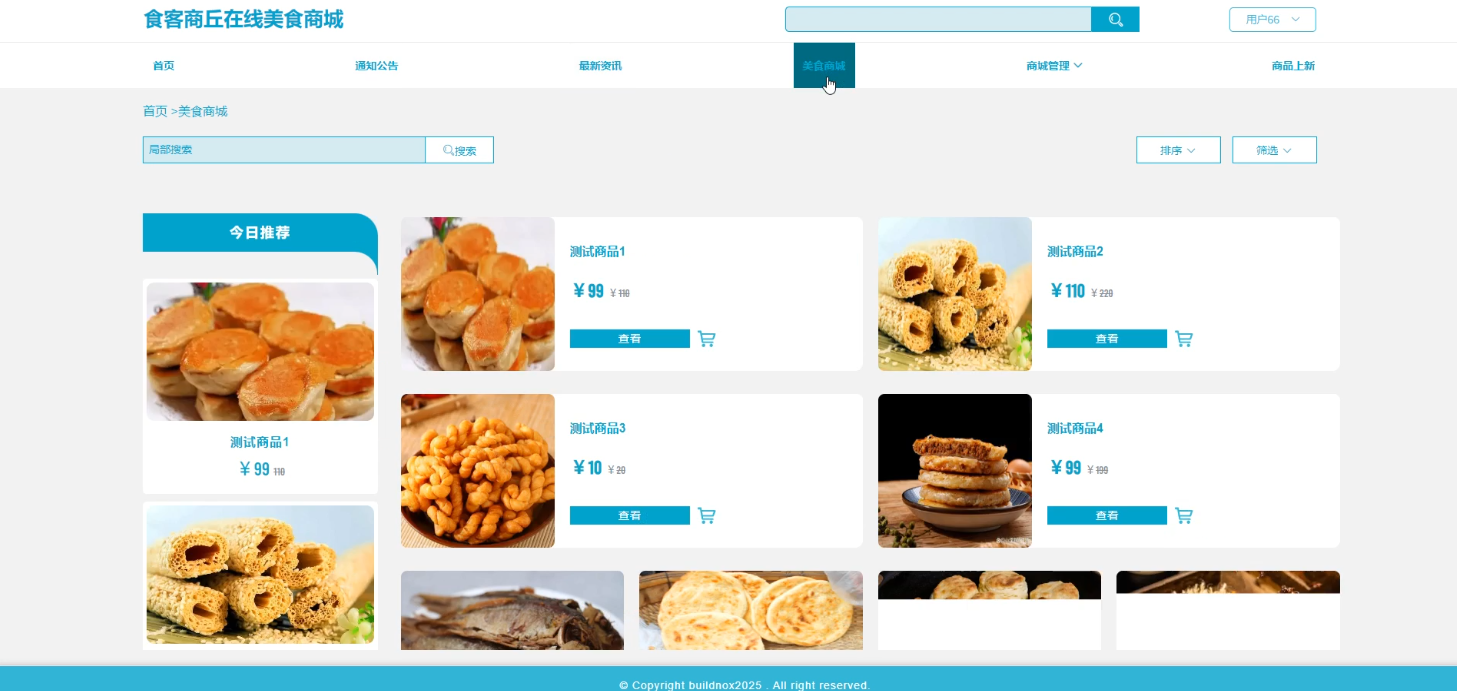 | 美食浏览功能测试 | 打开美食商城页面;浏览不同分类的美食信息 | 页面正常显示各类美食信息,无报错或加载失败 | 与预期结果一致 |