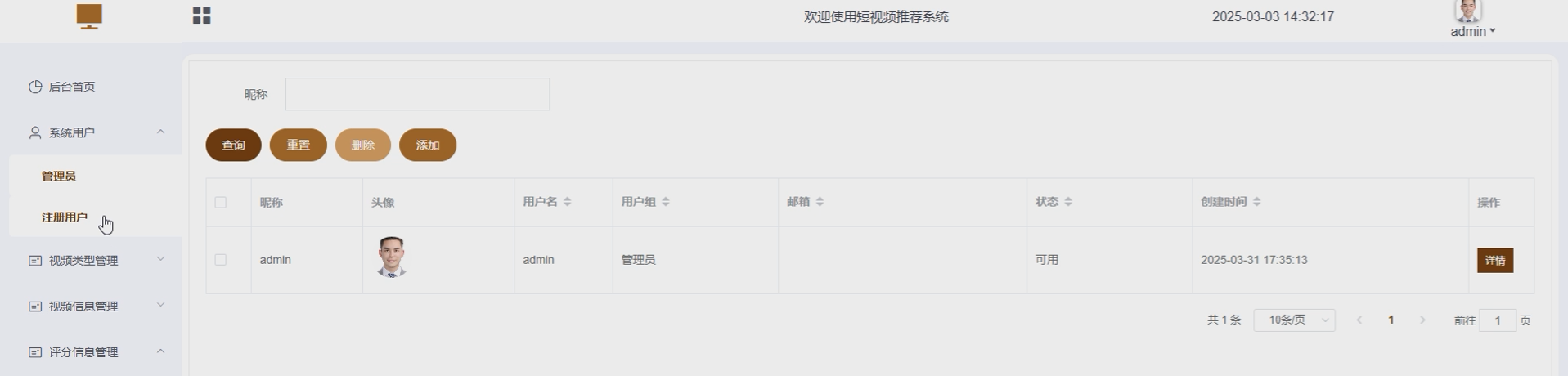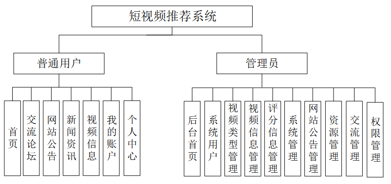 基于协同过滤的短视频推荐系统的研究重点是实现系统角色的功能,系统主要分为注册用户和管理员,具体功能如下:
