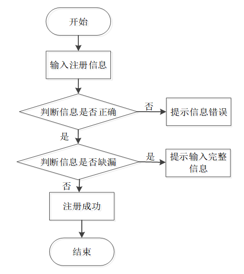 未有账号的用户可进入注册界面进行注册操作,填写注册表格,包括用户名、密码、电子邮件等必要信息。后台系统验证并保存用户提交的信息。分配唯一用户标识符。注册成功后,用户可以使用账号密码进行登录。用户注册流程图如下图所示。