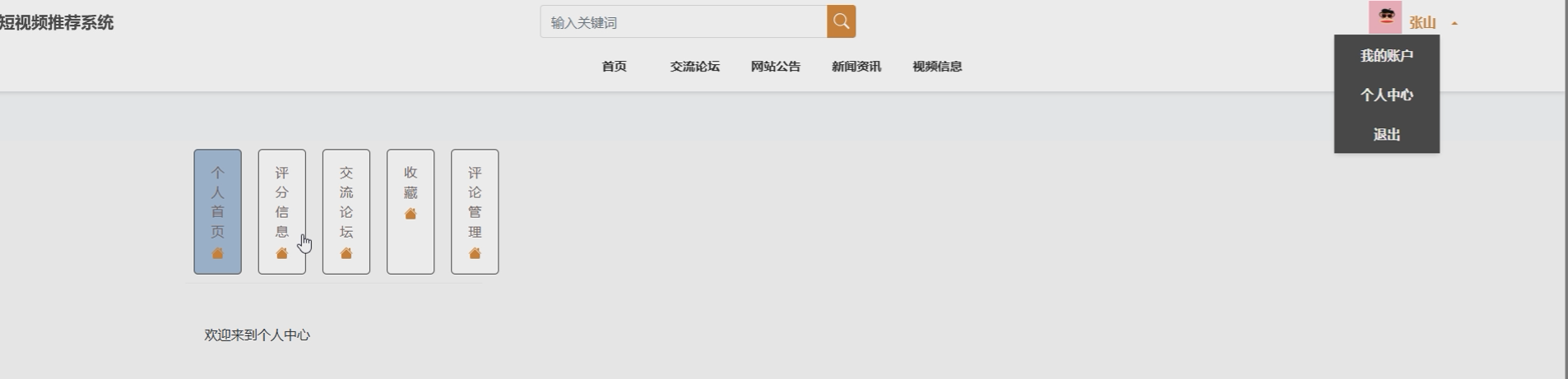 本论文设计并实现了一种基于协同过滤的短视频推荐系统,采用Django框架进行开发。该系统分为两大主要部分:管理员端与注册用户端。管理员端包括视频类型管理、视频信息管理、评分信息管理、系统管理、网站公告管理、资源管理、交流管理与权限管理等功能模块,平台内容的高效管理与维护。注册用户端则提供了首页、交流论坛、网站公告、新闻资讯、视频信息、个人账户与个人中心等功能模块,帮助用户高效浏览、评分和管理其个人内容。