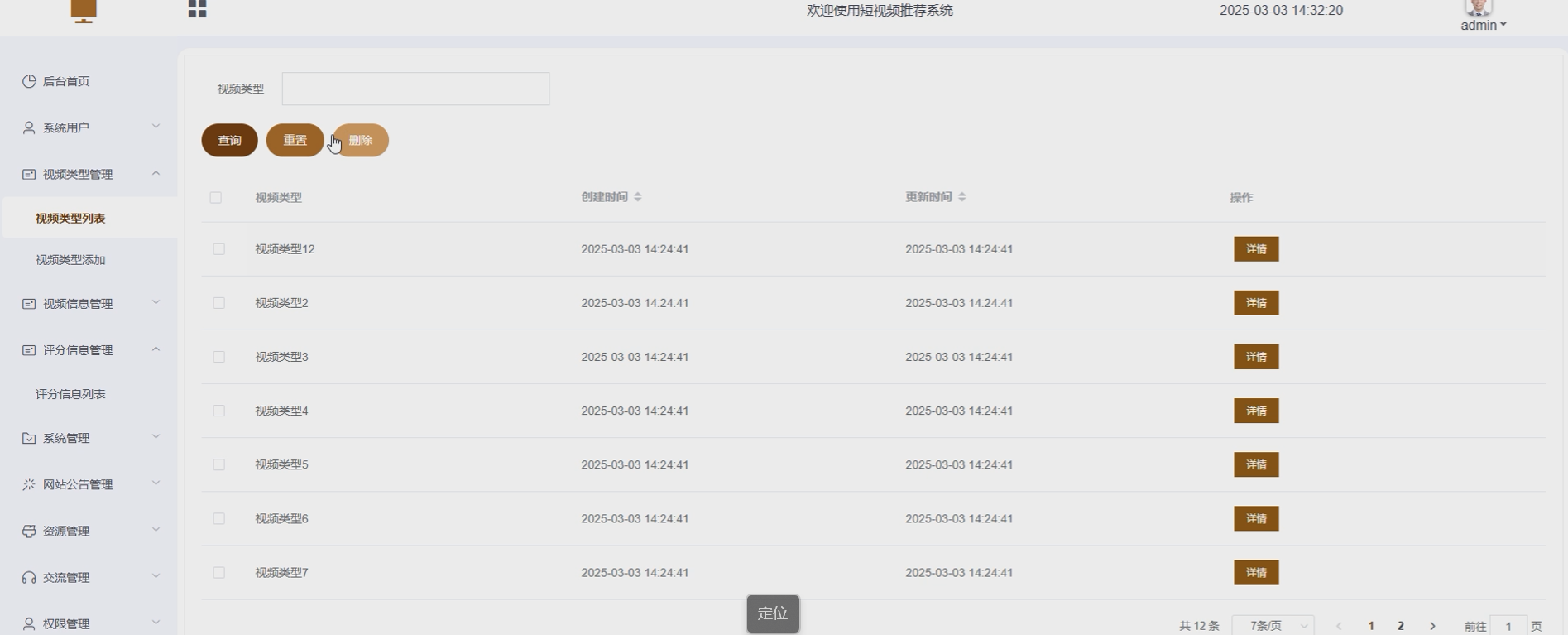 (3)视频类型管理:管理员可以分类管理平台上的视频内容,确保每个视频都能根据类别进行合理展示和推荐。