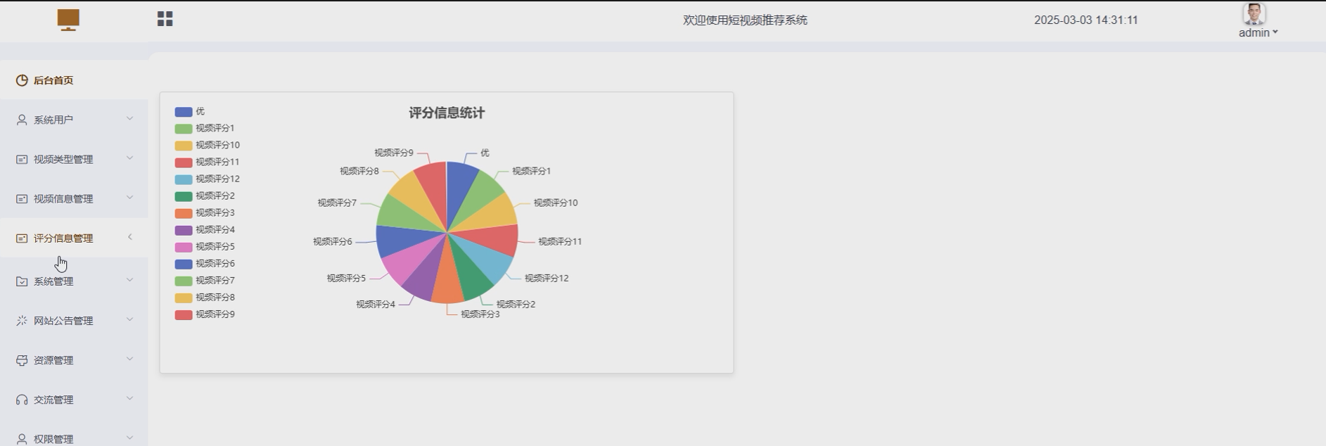 (5)评分信息管理:管理员能够查看用户的评分数据,对评分系统的运作进行监管,确保评分的真实性和公正性。