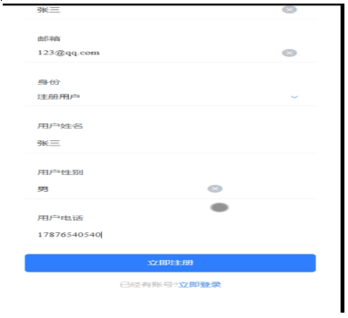 注册页UserController.java,传入user对象,并将"user_id"、 "state"、 "user_group"、"login_time"、"phone"、"phone_state"、 "username"、"nickname"、"password"、"email"、"email_state"、"avatar"、"create_time"输入,重点是 "username"、"nickname"、"password"必须输入,通过获取username,数据库查询是否有该用户,如果存在,则提示“用户已存在”,否则执行将UserId置为空(数据库表中该字段已设置自动递增),代码如图所示。