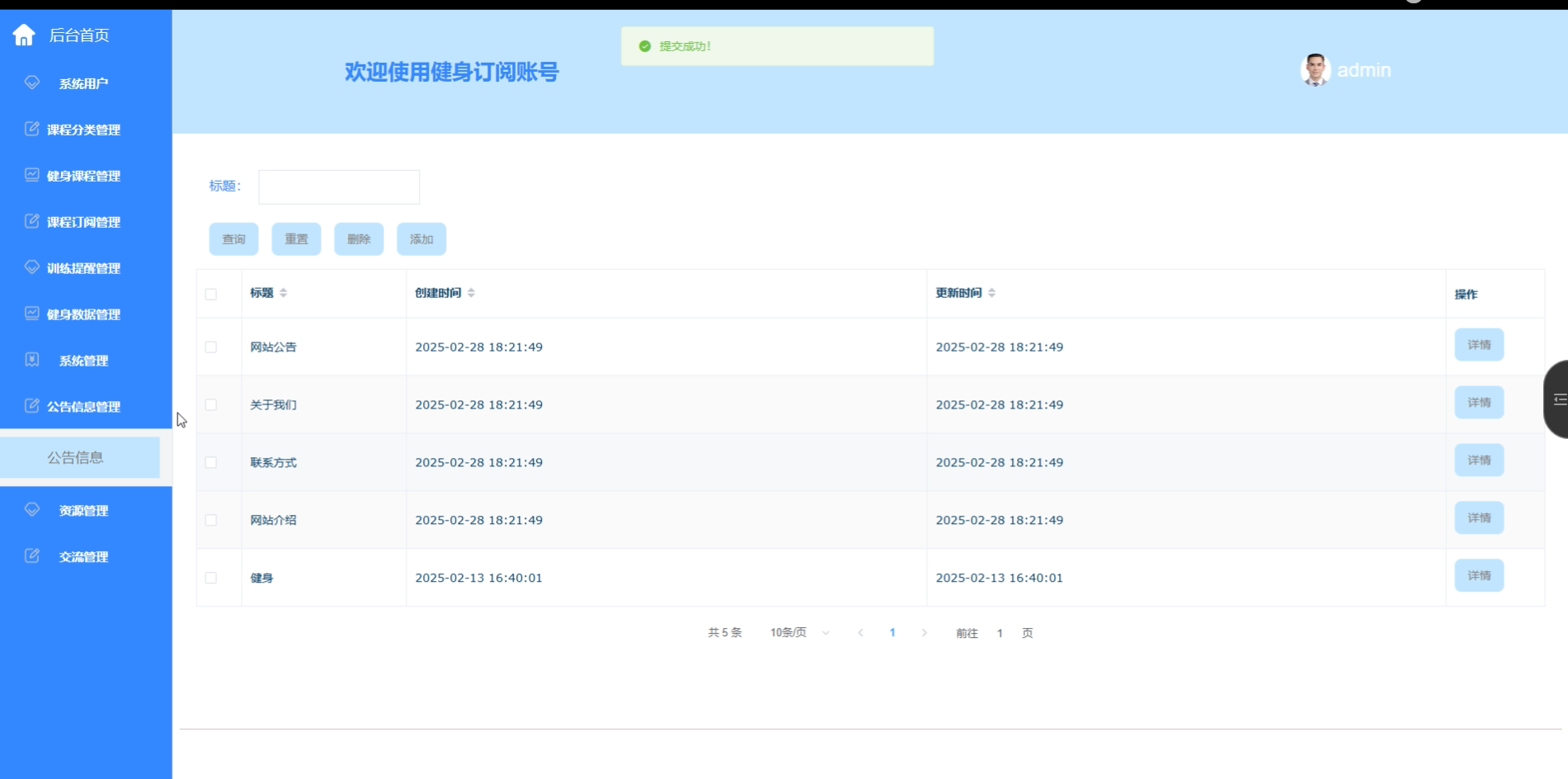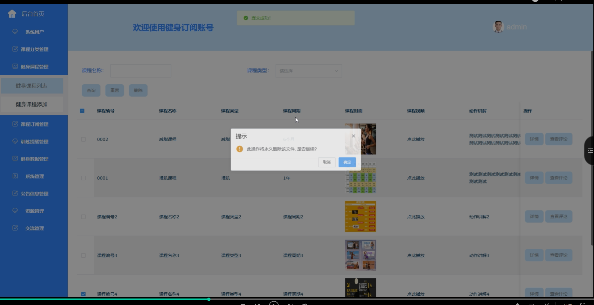 | 预期结果 | 可以查看到所有健身课程信息 |